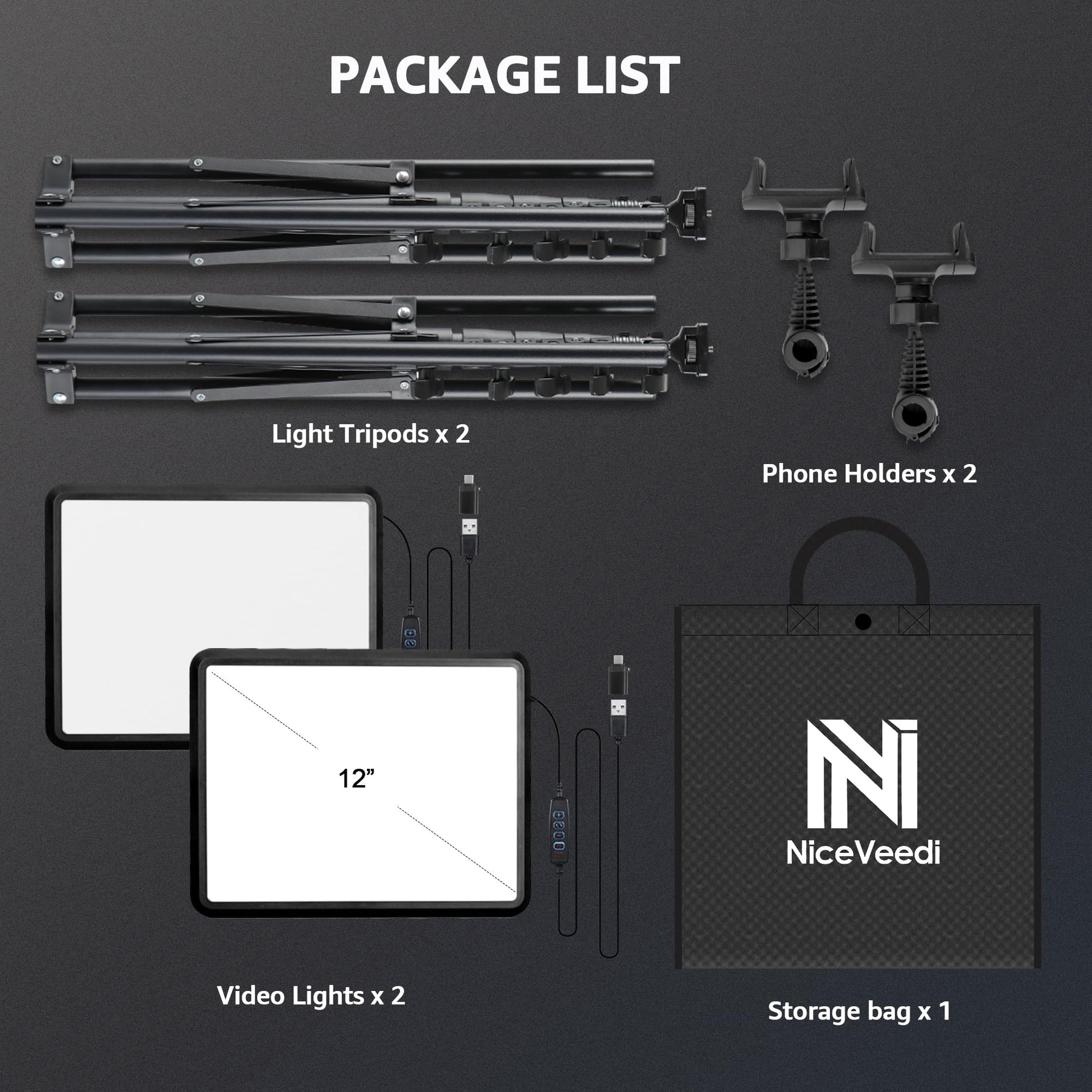 - 【Package List & Customer Service】There will be 2 LED studio light panels with cable. adjustable tripod stand for each light panel, 1 user manual, 1 storage bag, 2 USB-C adapters. Whatever issues you meet during the usage or any defects arise, rest assured that we are here to assist you.