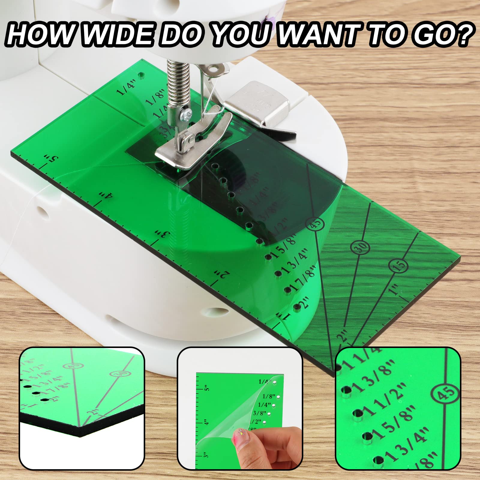 - Simple to use:Magnetic guide helps you sew a straight line or circle line track to reduce mistakes and uneven stitching.Seam allowance ruler with 16 incremental holes to help you measure 1/8" to 2" seam edges. This sewing ruler includes 1/4" pivot points and a 45 degree trim line for binding and trimming shapes.The seam allowance foot has a “ruler” with an adjustable guide designed so you can place the guide anywhere you want.