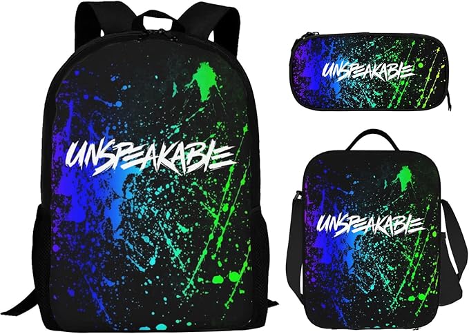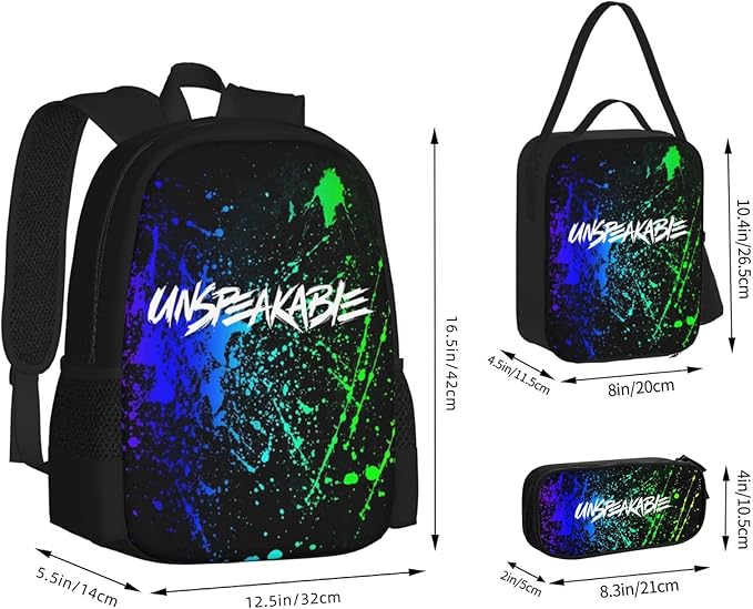 - 【Size】Backpack Size: 11.02'' (L) x 5.11'' (W) x 17.32'' (H). Lunch Bag Size: 7.48'' (L) x 3.14'' (W) x 9.84'' (H). Pencil Case Size: 8.66'' (L) x 1.96'' (W) x 4.33'' (H). Polyester Fabric, Zipper Closure, Easy To Open And Close.