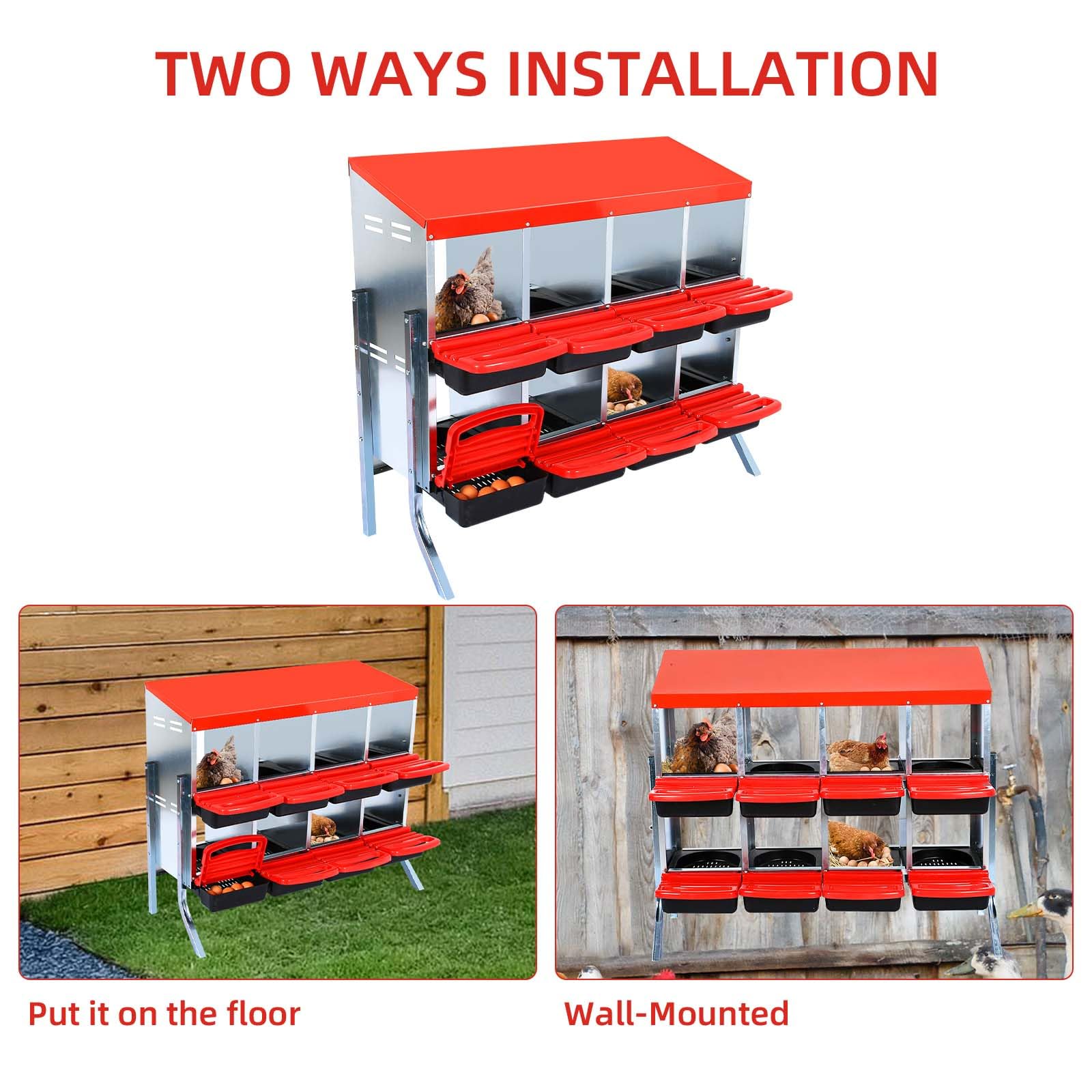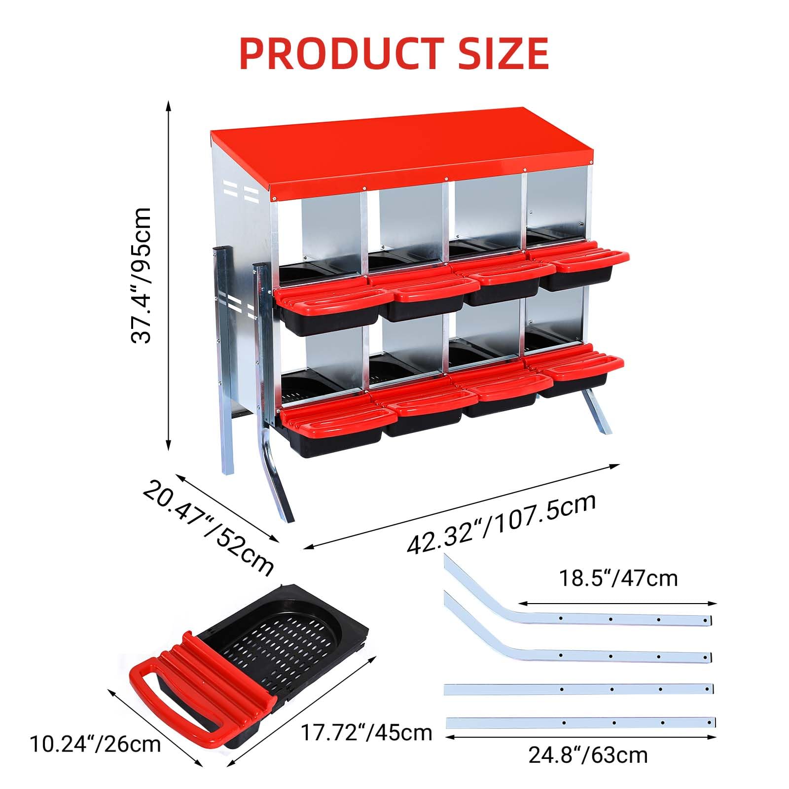 - EFFICIENT EGG COLLECTION: The unique sloped design of the nesting box ensures that eggs roll smoothly into a collection tray, making retrieval easy and effortless. This feature keeps eggs safe and secure while simplifying the collection process.