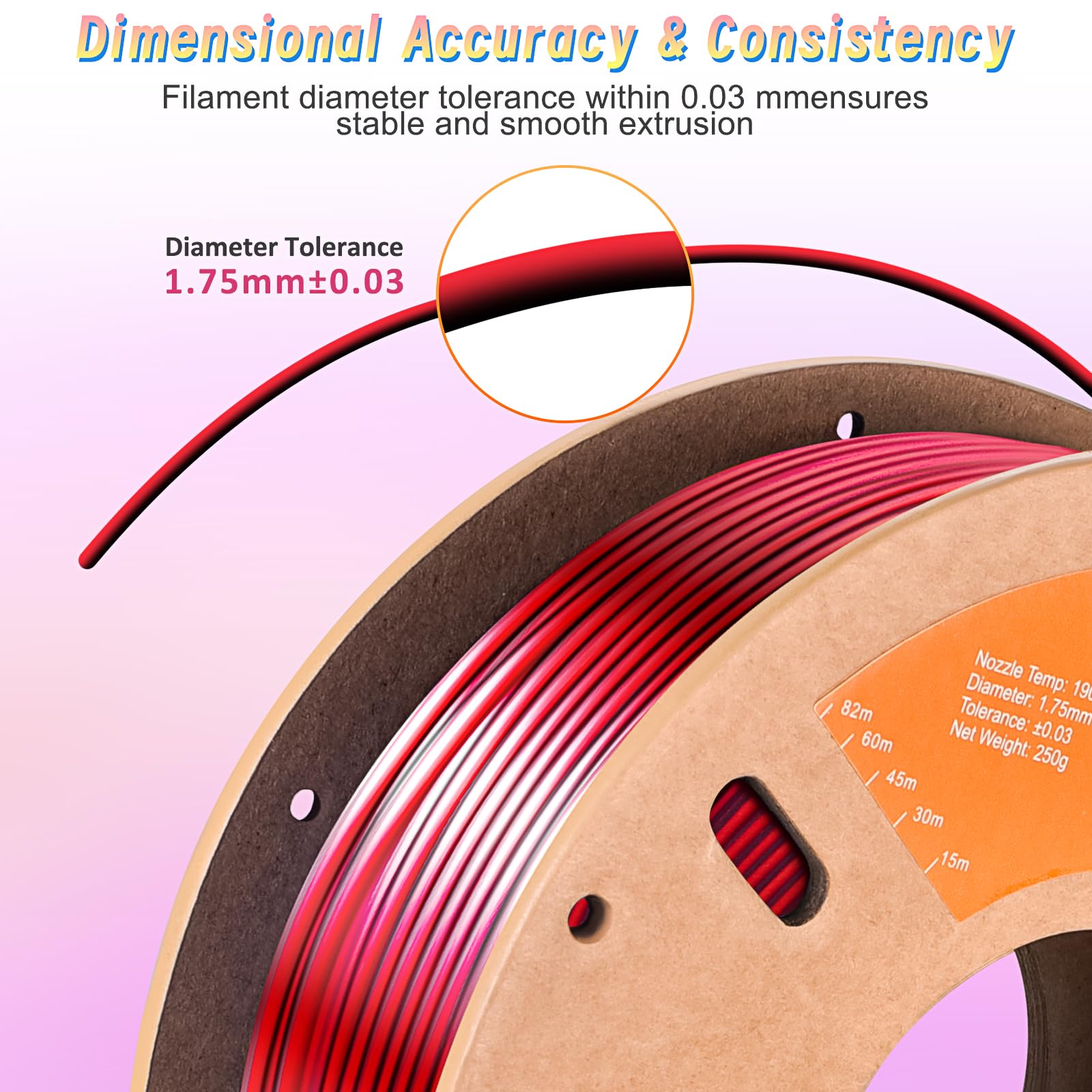 - 【No Warping Multicolor Filament】Perfect winded silk blended color pla filament,tangle-free before unopened, no stringing and warping.Universal compatibility with most FDM 3D printers and 3D Pens.