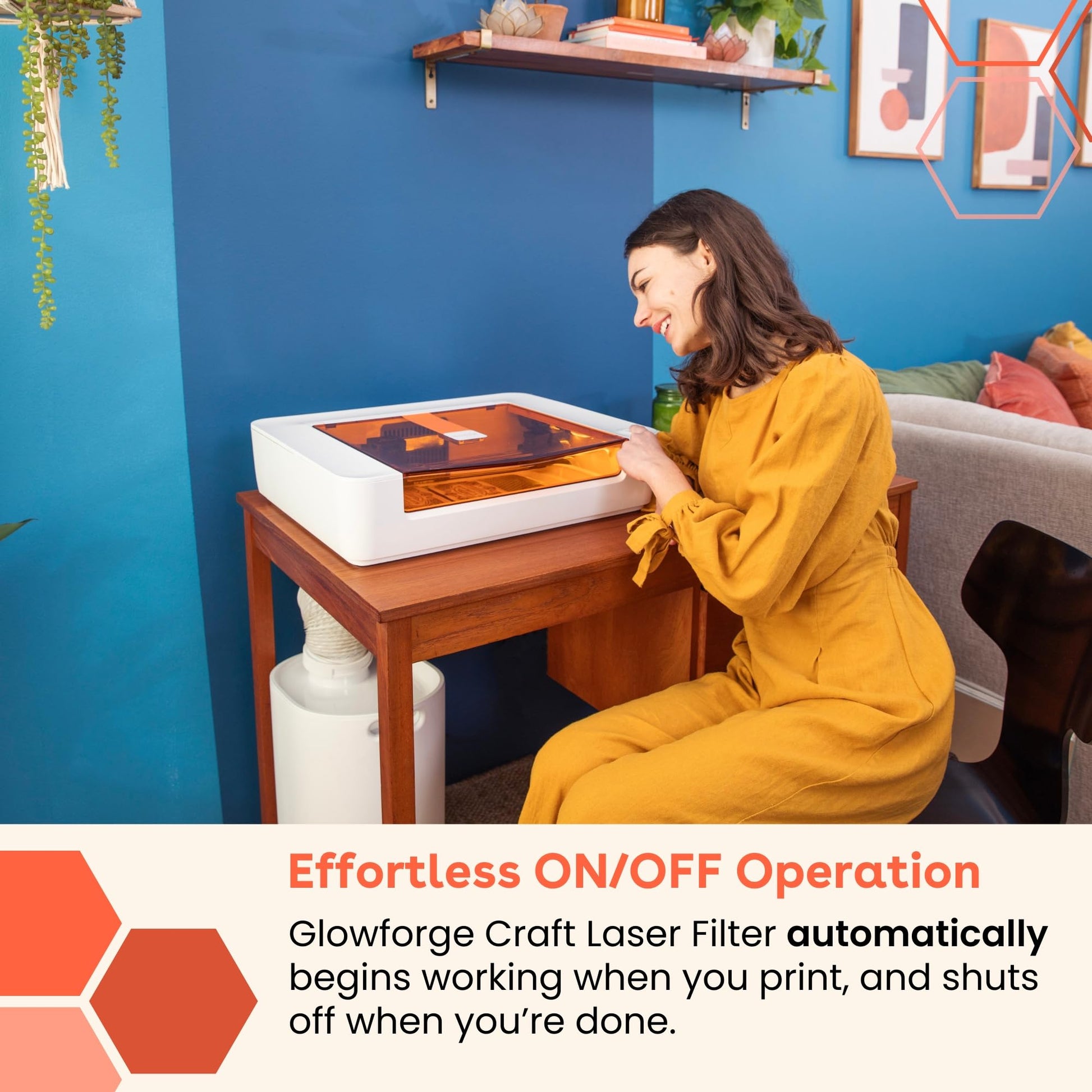 - Designed exclusively for Glowforge Aura and Spark: Engineered to pair effortlessly with Glowforge Craft Lasers. It powers on and off automatically with your print jobs, ensuring efficient filtration and intelligent energy use.