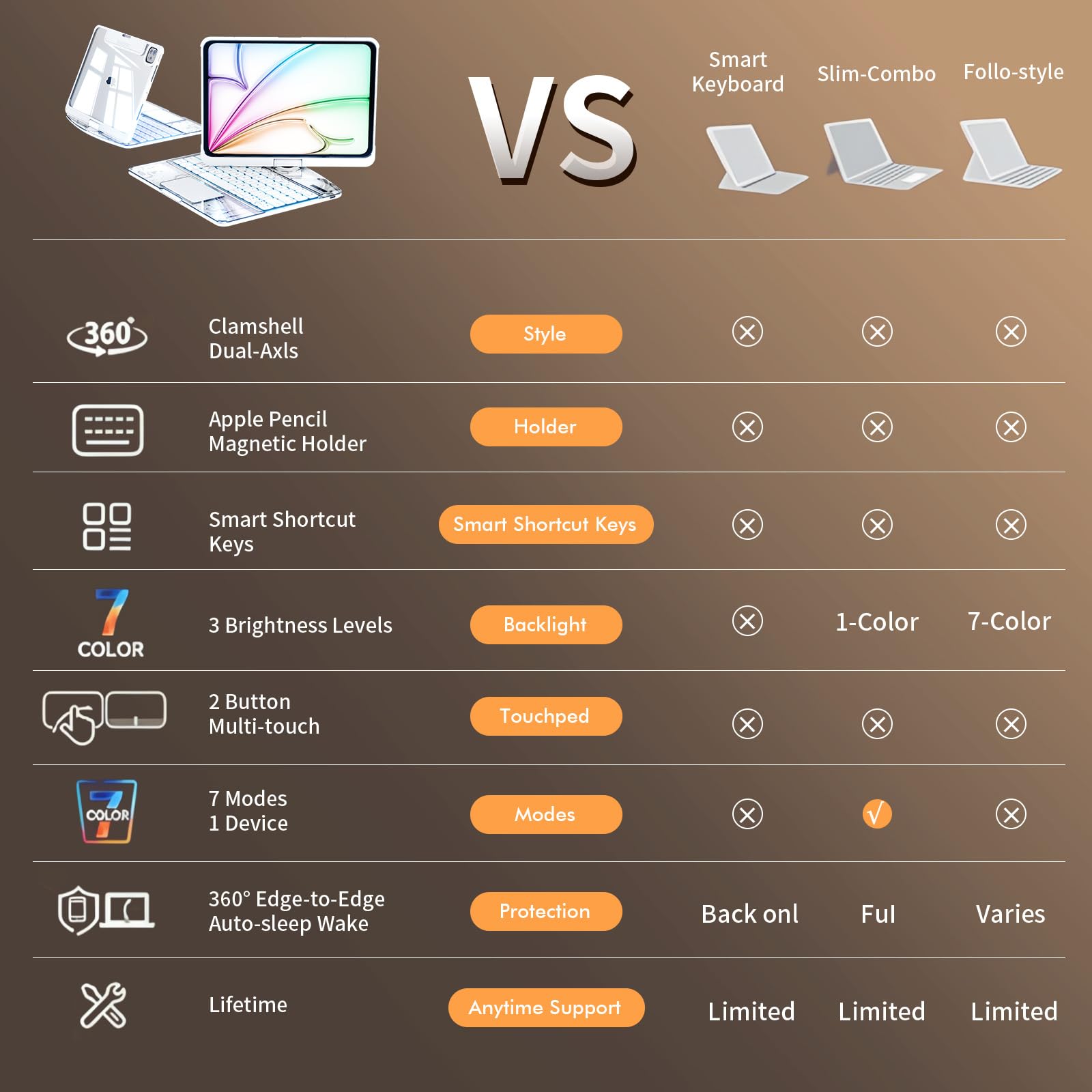 - 【Precision Fit+Model Coverage】 This keyboard case Perfectly designed for iPad 10/11th Generation. on the back of your device before purchasing to ensure compatibility. If you are unsure about compatibility, feel free to contact us—we're happy to ass