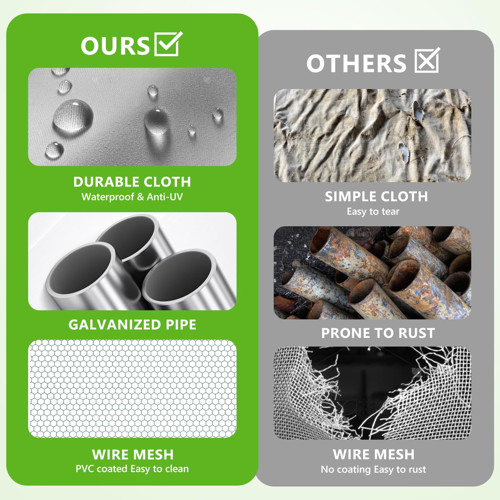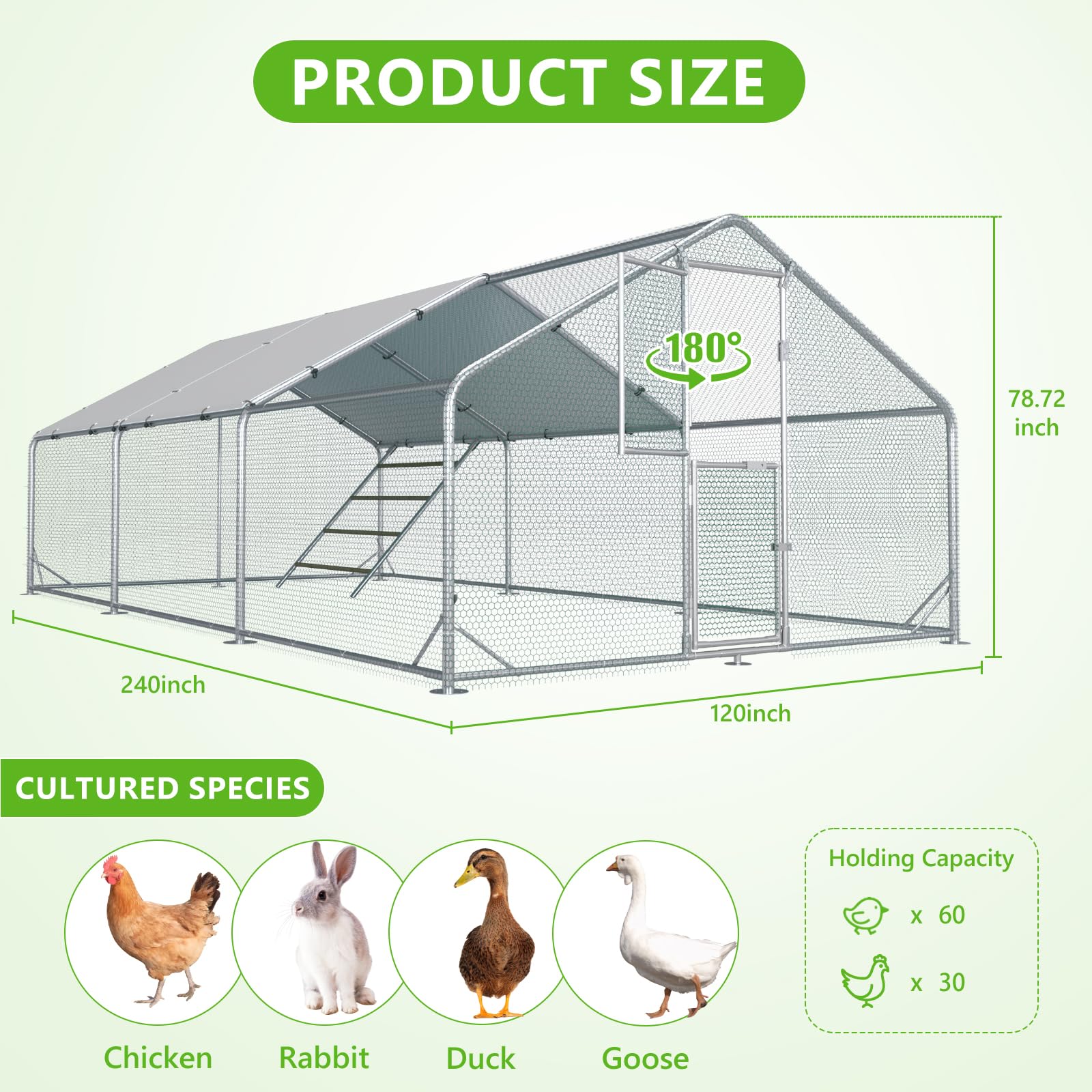 - 【Strong Galvanized Frame & Secure Wire Mesh】Built with heavy-duty galvanized steel, this chicken run offers enhanced durability and rust resistance. The reinforced hexagonal wire mesh helps keep predators out while providing a safe space for your animals.