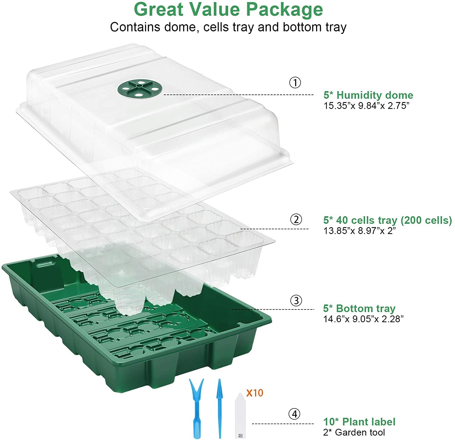 - MIXC Seed Starter Tray contains: 5 x seed tray, 5 x bottom tray, 5 x humidity dome, 2 x garden tools, 10 x plant labels (A must have for seedling)