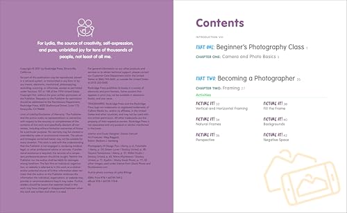 This book about photography for kids includes: Photography fundamentals―Discover how a camera works, a brief history of photography, what makes a photo good, and a checklist for getting started. Example photos―Explore high-quality photographs that illustrate the concepts you're learning and inspire you to get creative. Tips and how-tos―Find pointers that explain the technical details of great photos and show you ways to make adjustments in a variety of real-life situations.
