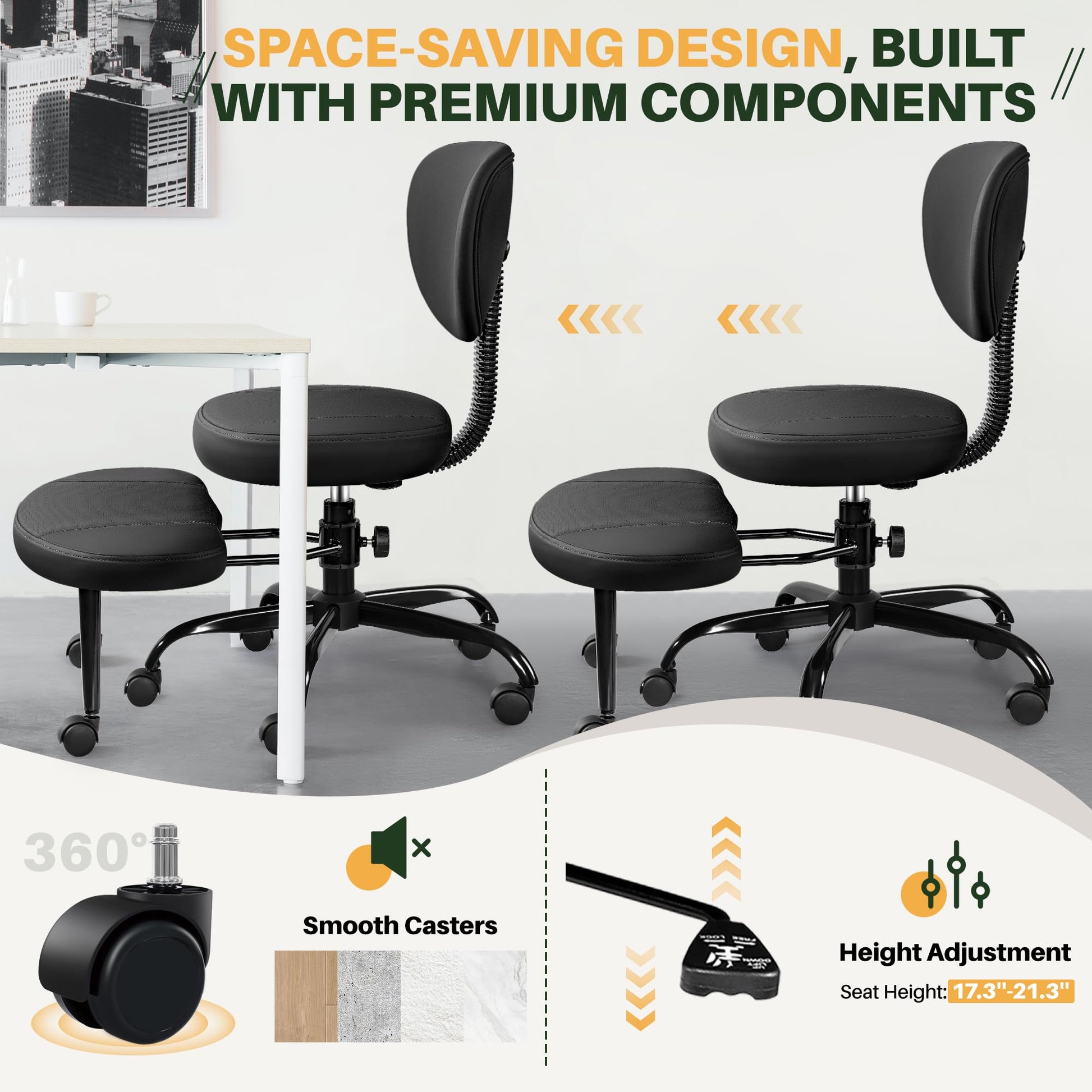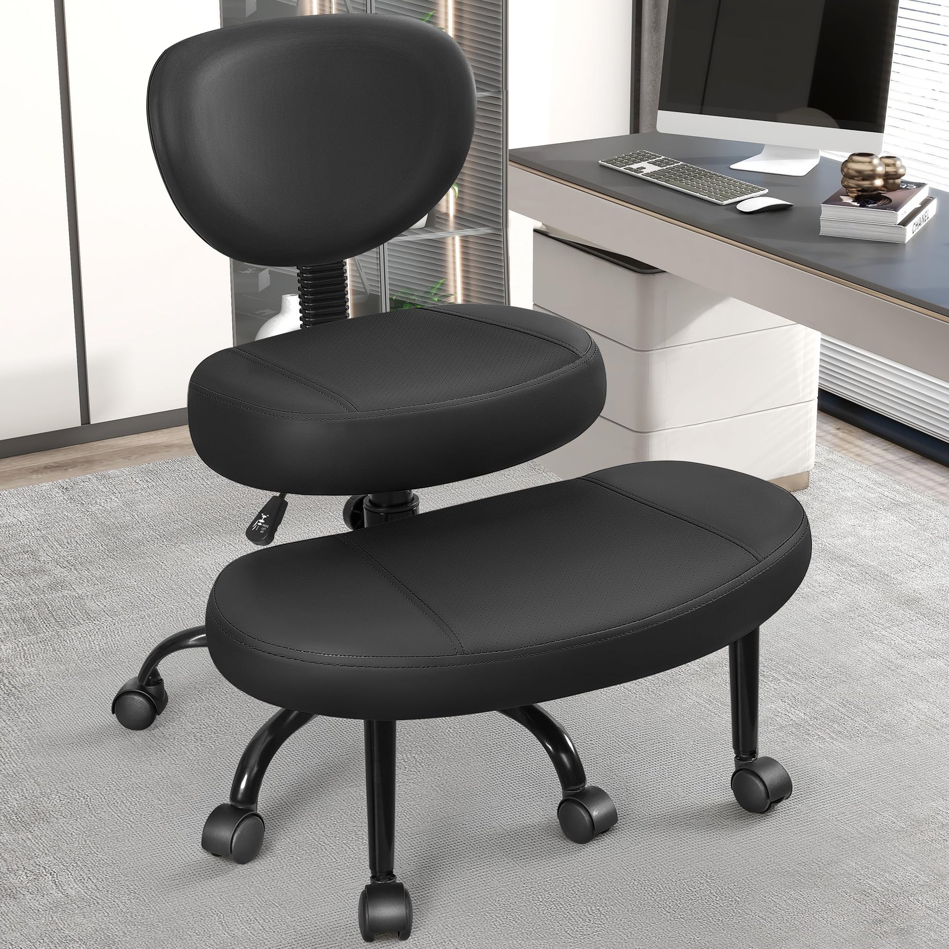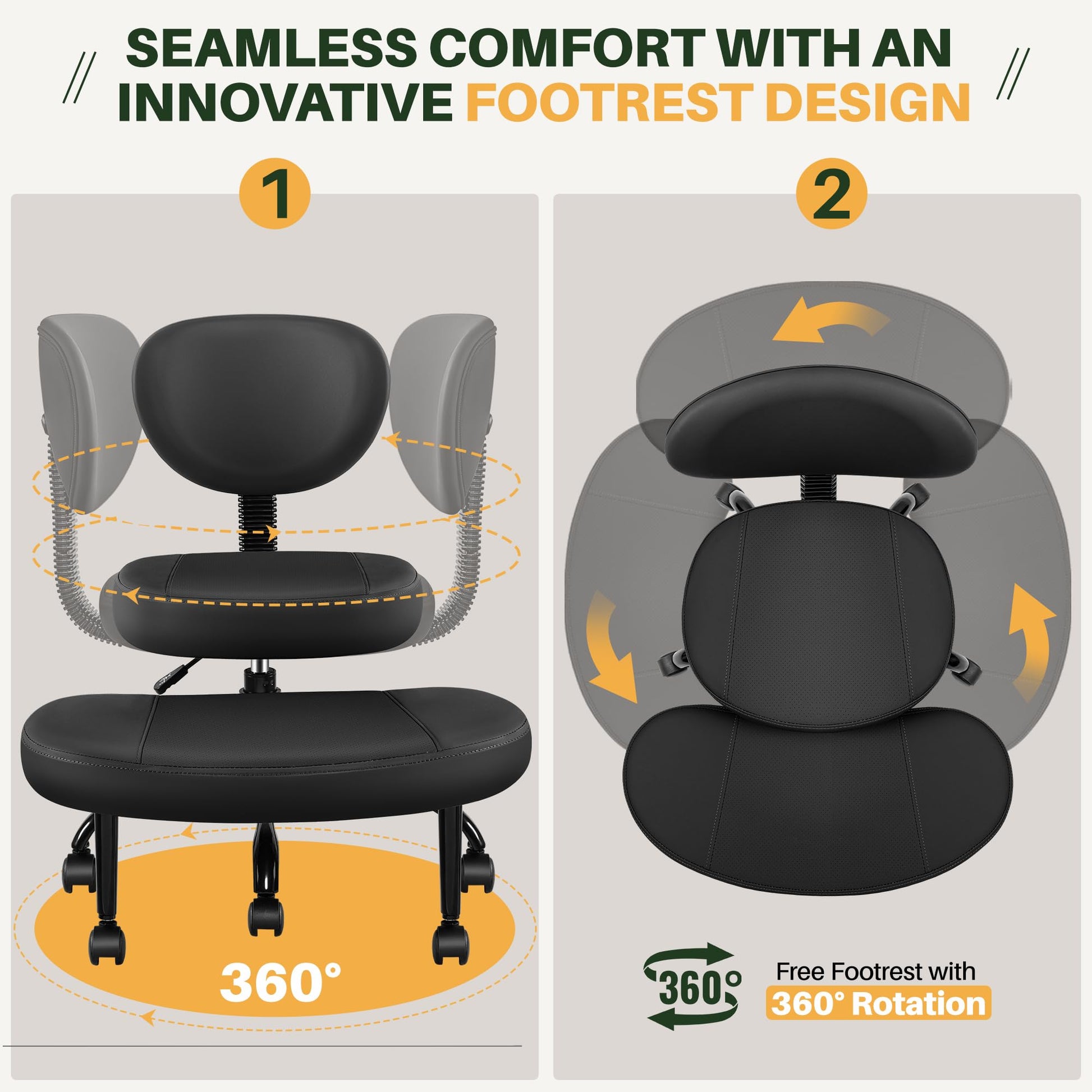 - Flexible Footrest Design: The kneeling desk chair features a unique footrest that Scalable adjustment and 360°rotates, allowing for a fully customizable seating experience. This flexible design adapts to your needs, offering comfort for a wide range of postures, and providing support whether you're sitting cross-legged or in a kneeling position.