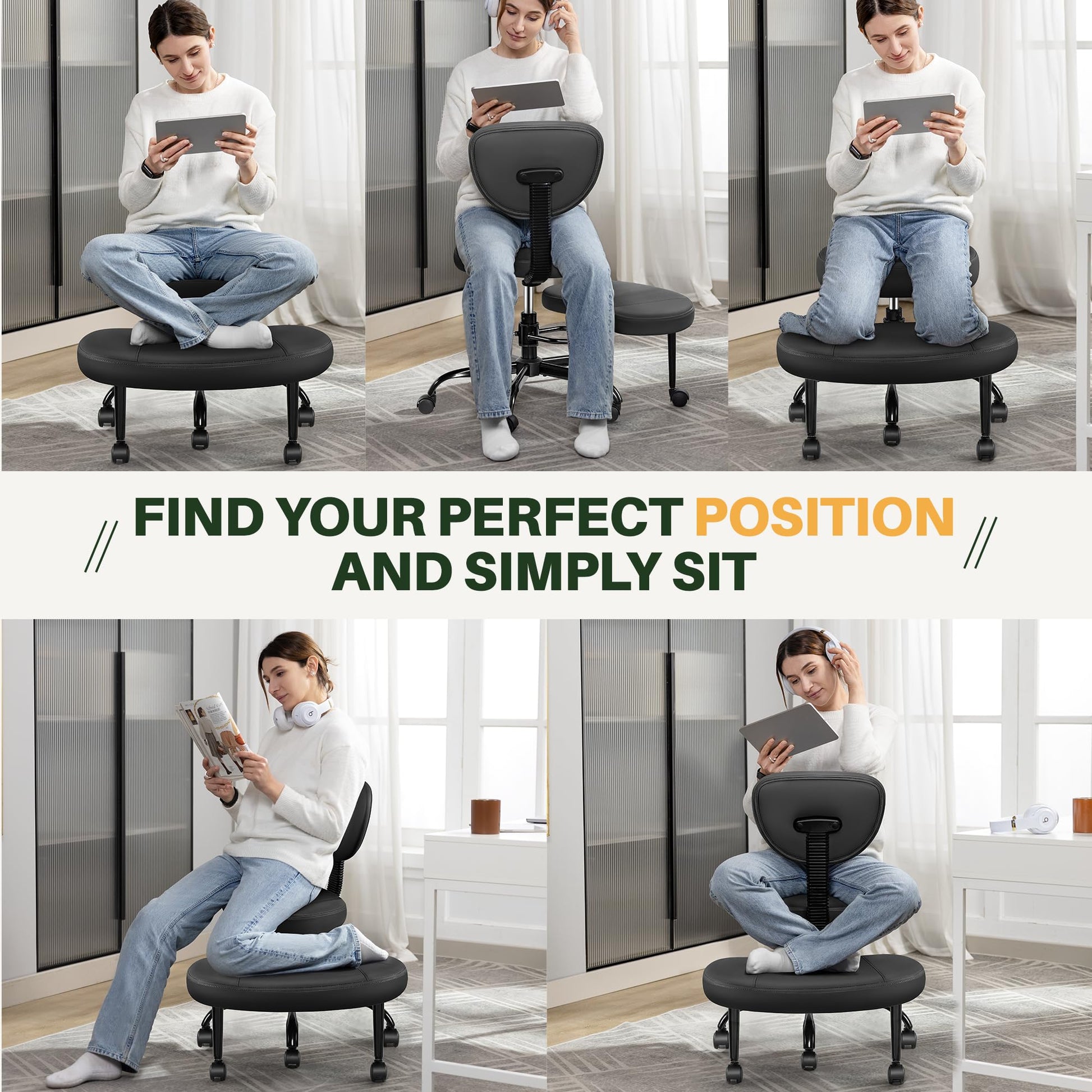 - Activate Sitting Experience: This cross legged office chair promotes dynamic sitting by encouraging you to change positions regularly. Whether you are working or resting, switching between different sitting positions ensures comfort, which is a good choice for those who need to maintain a sitting position for a long time.