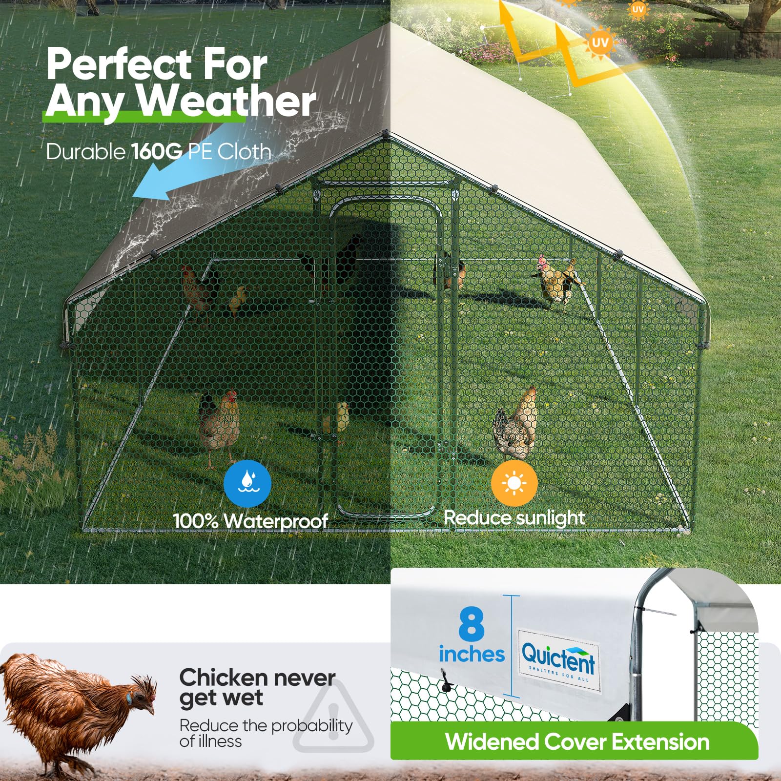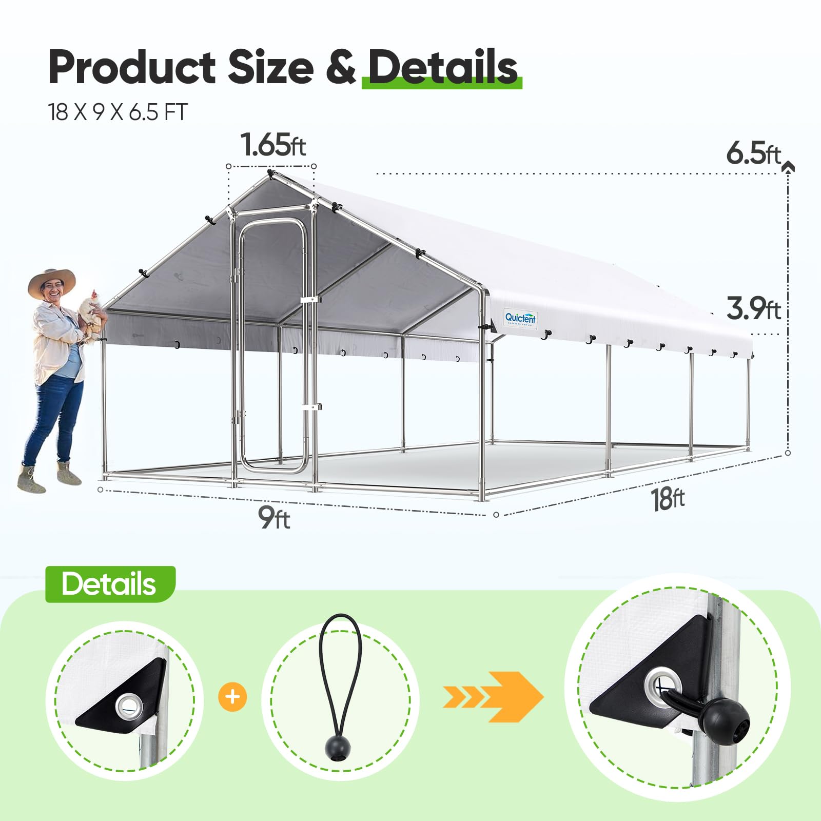 Quictent Large Metal Chicken Coop Run W/Roosting Perch, 18x9x6.6FT
