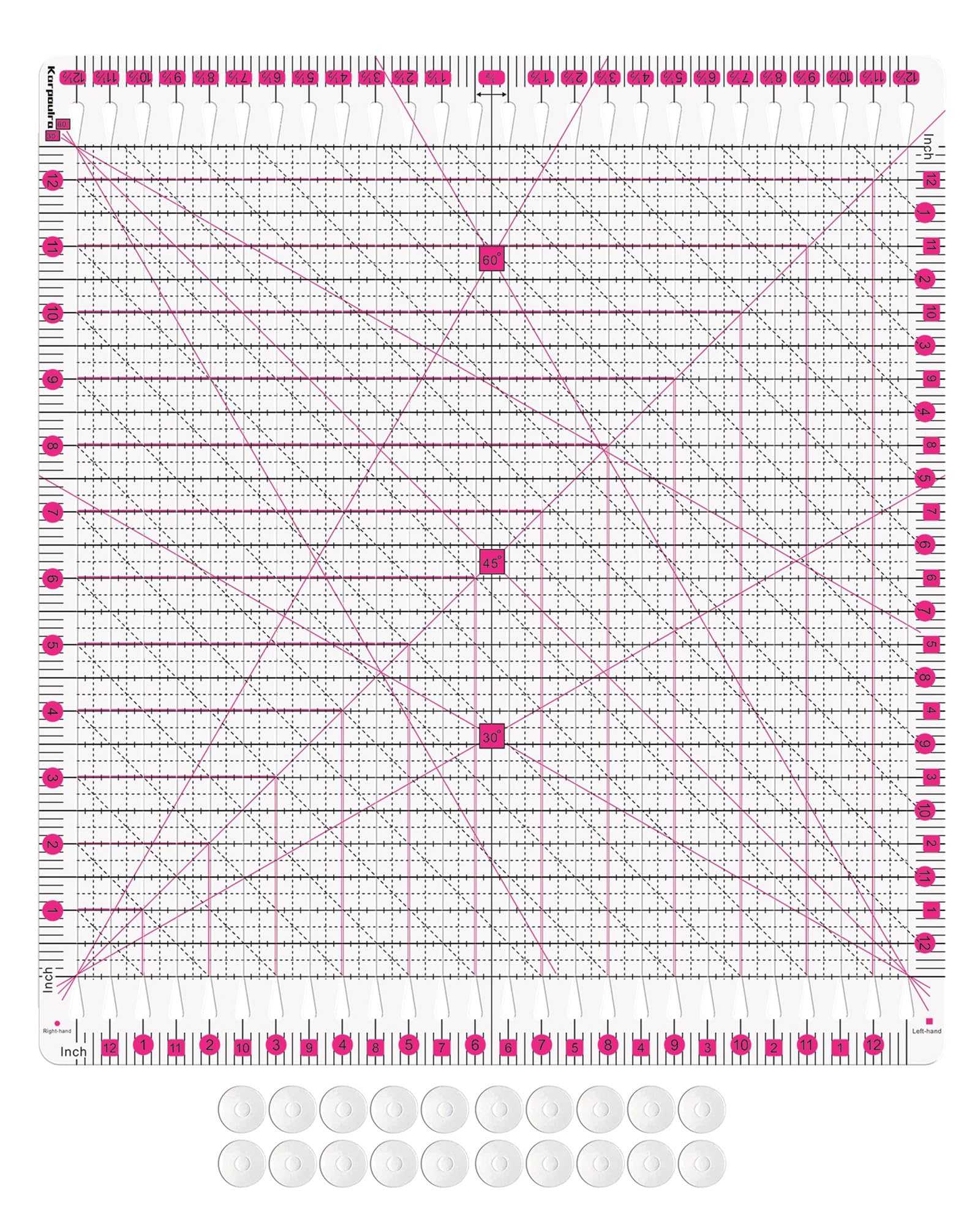 - Easy to Read: This 12.5 by 12.5 inch quilting ruler is made of high clear transparent acrylic, double color sight lines and large print numbers that show up on light and dark fabrics. High clear acrylic to see through the sewing ruler for a precise cutting.