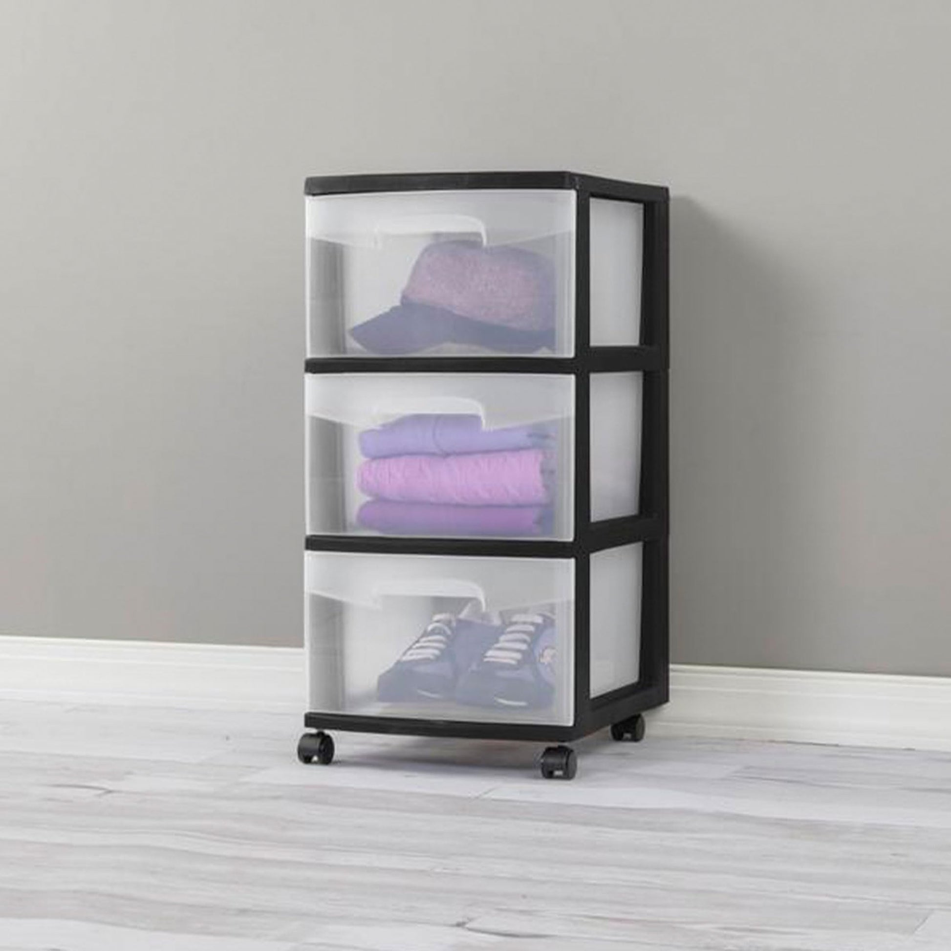 - Features 3 see-through storage drawers that allow for contents to be easily identified; Drawers feature ergonomic, easy-pull handles and convenient drawer stops