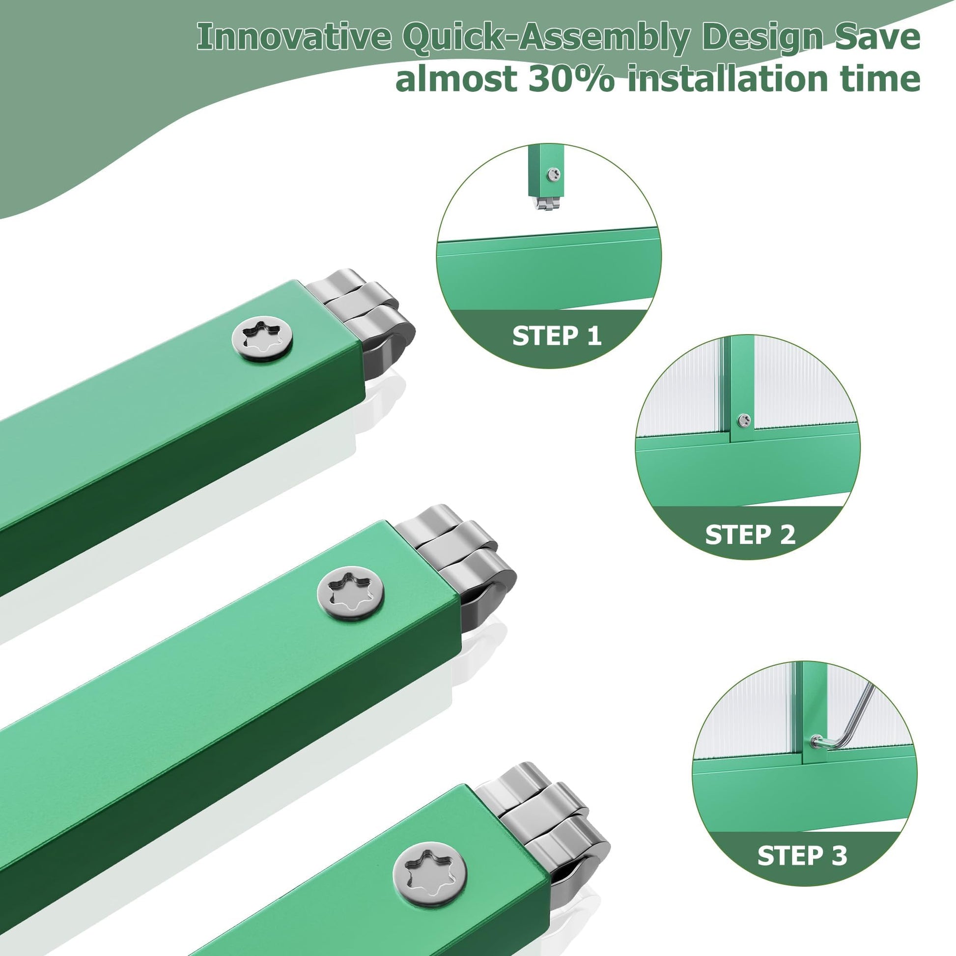 - Fast Assembly System: Designed with slide-in polycarbonate panels, this outdoor greenhouse installs faster and more securely than traditional structures, with clear instructions and included tools to support a smoother setup process while creating a stable and reliable growing space