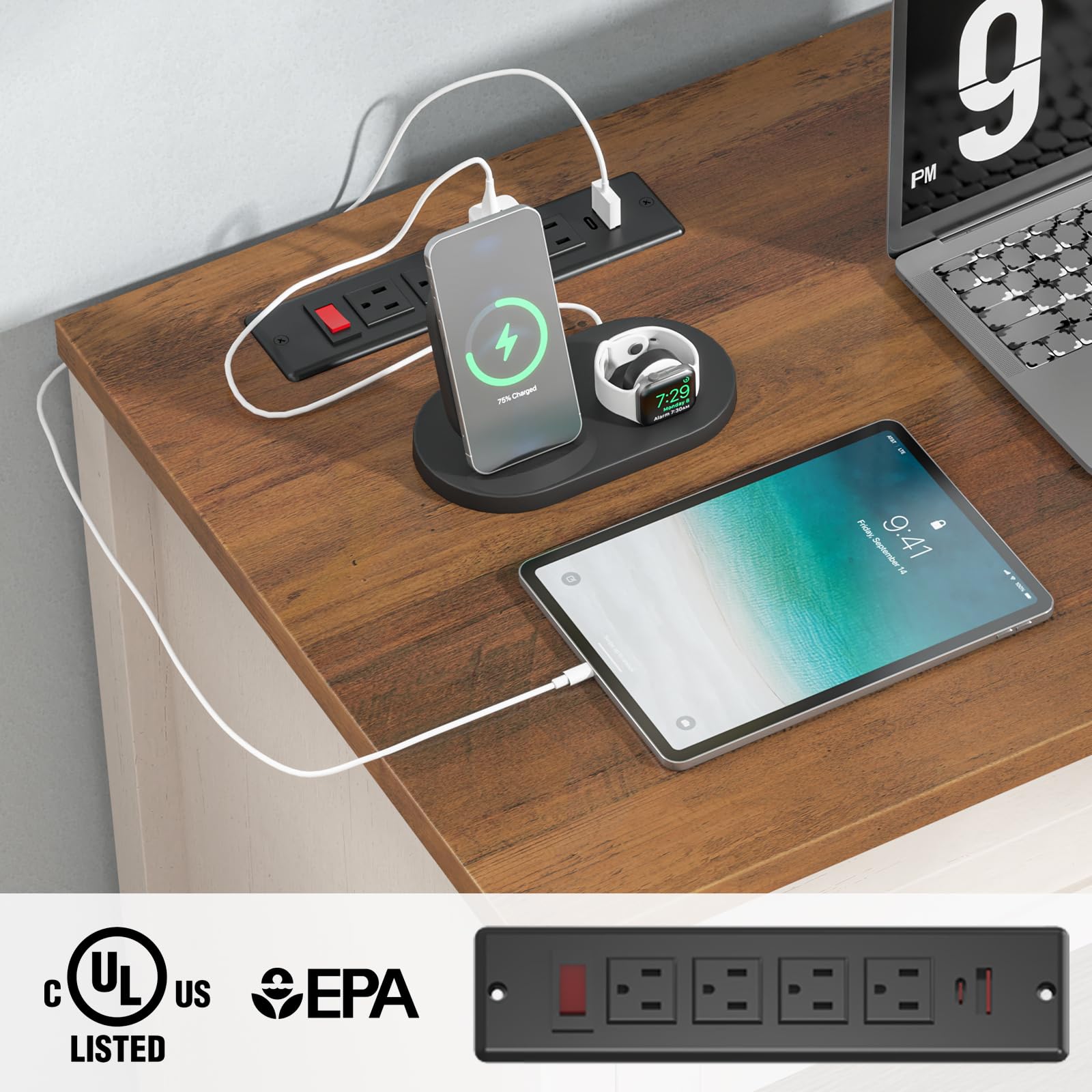 - 【Convenient Charging Station】Our charging hub features 4 outlets and 2 USB ports, allowing simultaneous power supply for up to 6 devices. It includes an on-off switch for safe electricity usage and convenient one-button power-off functionality, enhancing security. The power outlets accommodate charging for a variety of devices such as cell phones, tablets, and laptops.