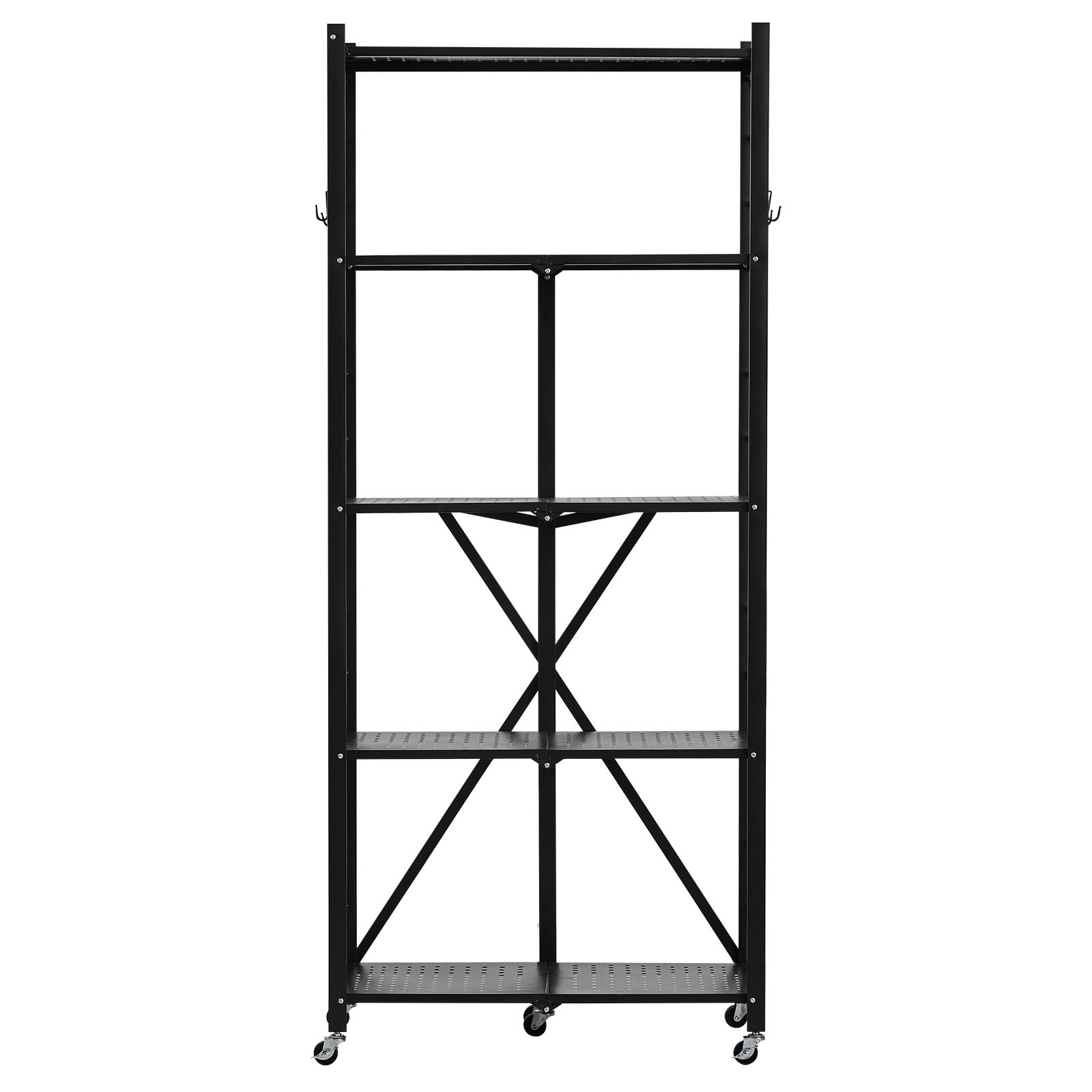 5-Tier Foldable Storage Shelf, 28W x 13D x 66H Inch Folding Metal Rack Shelving Unit